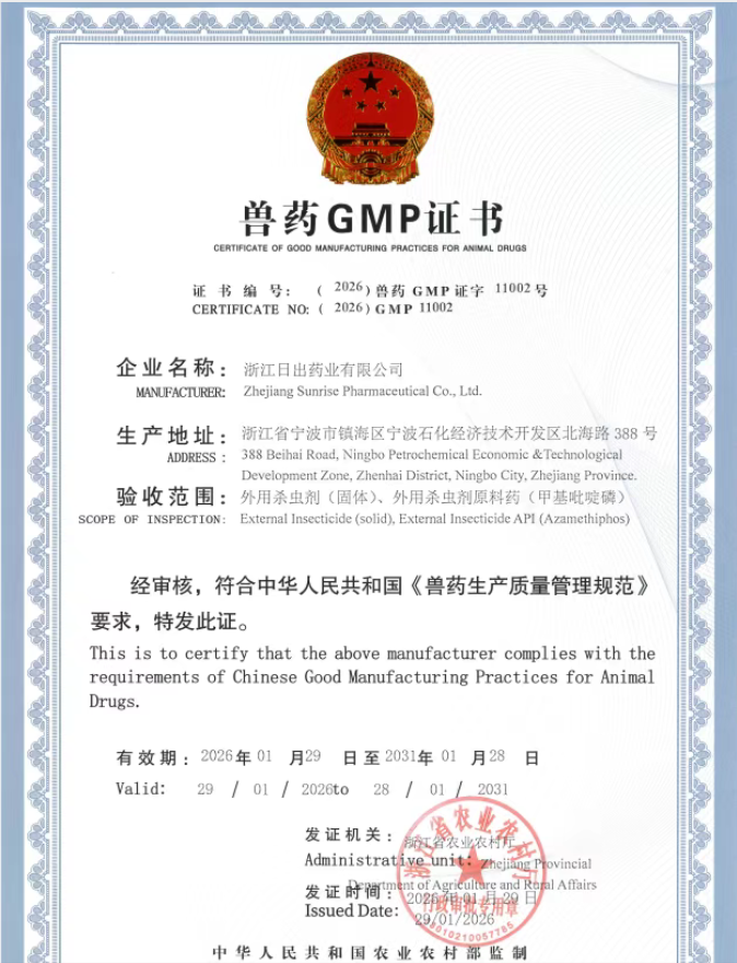 浙江日出药业有限公司顺利通过中国兽药GMP复验。